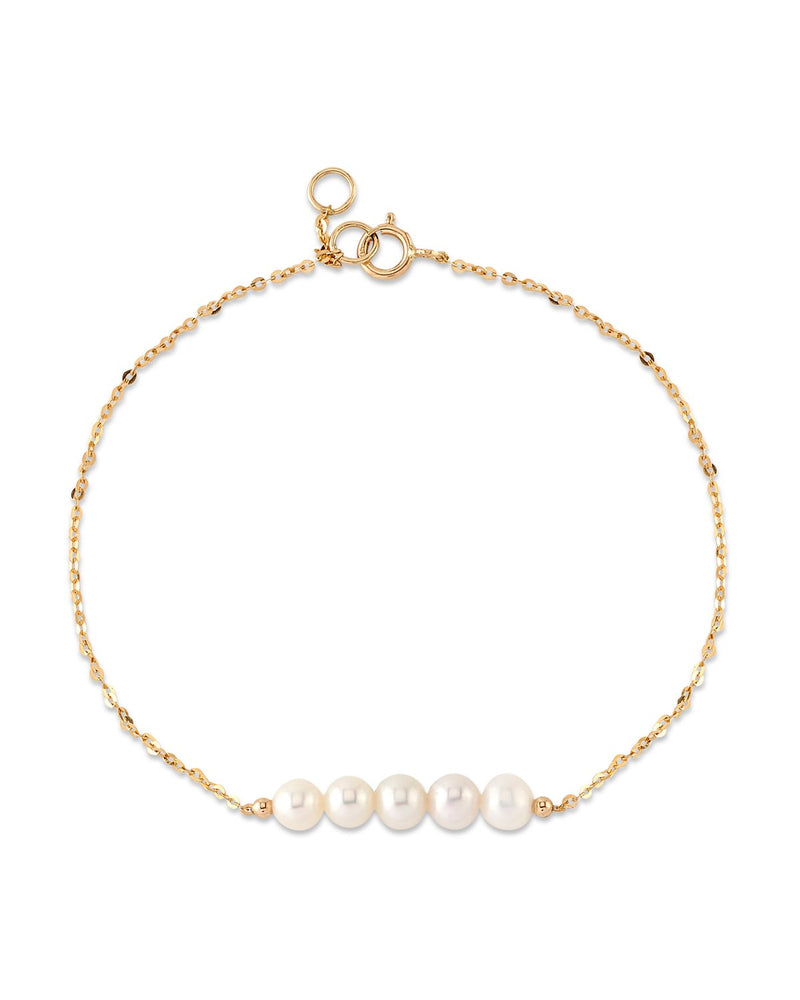 This chic pearl bracelet features five 4.0-4.5mm Gem quality Freshwater pearls hand picked for their incredible luster. This style is designed with a beautiful cable chain on both sides of the pearls, with a spring clasp (plus extender) for the bracelet. The bracelet comes in standard 6" length, but includes an extension up to 7.5" in length. This item comes packaged in a beautiful jewelry gift box, perfect for gifting.