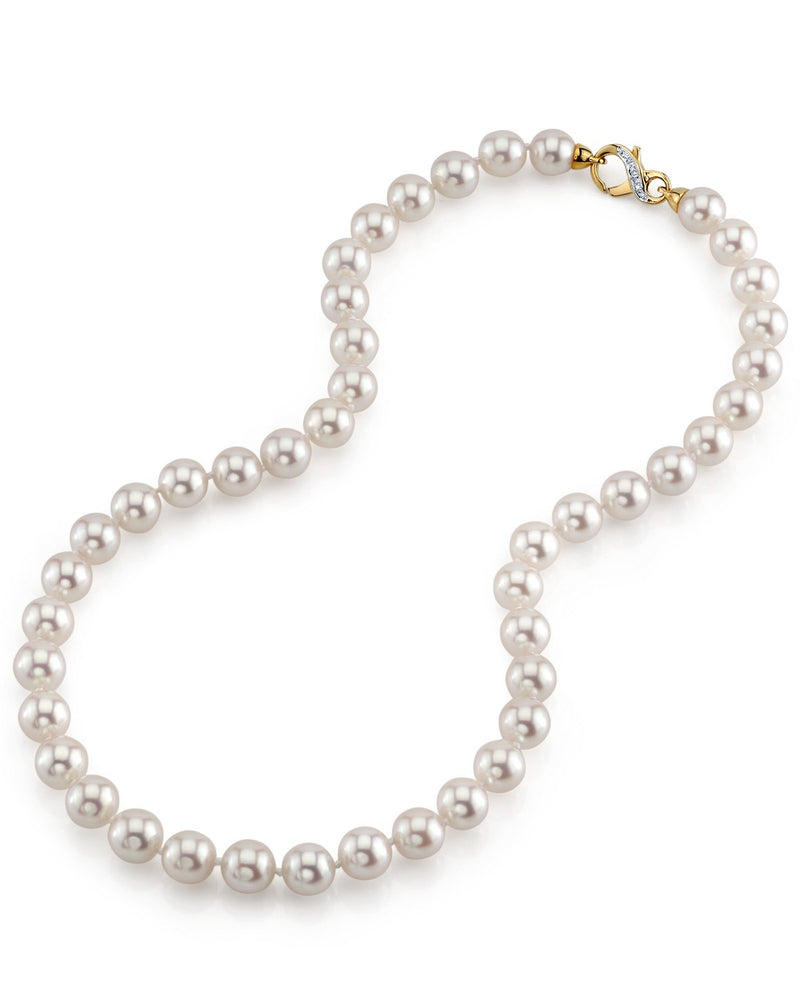 Popularly known as "Flower Pearls" for their delicate to deep rose overtones, each Hanadama Japanese Akoya Pearl Necklace features some of the most brilliant, luminous luster ever seen. Graduating from 9.0-9.5mm, this luxurious necklace is one of the largest size available in this pearl type, and exudes stunning elegance.