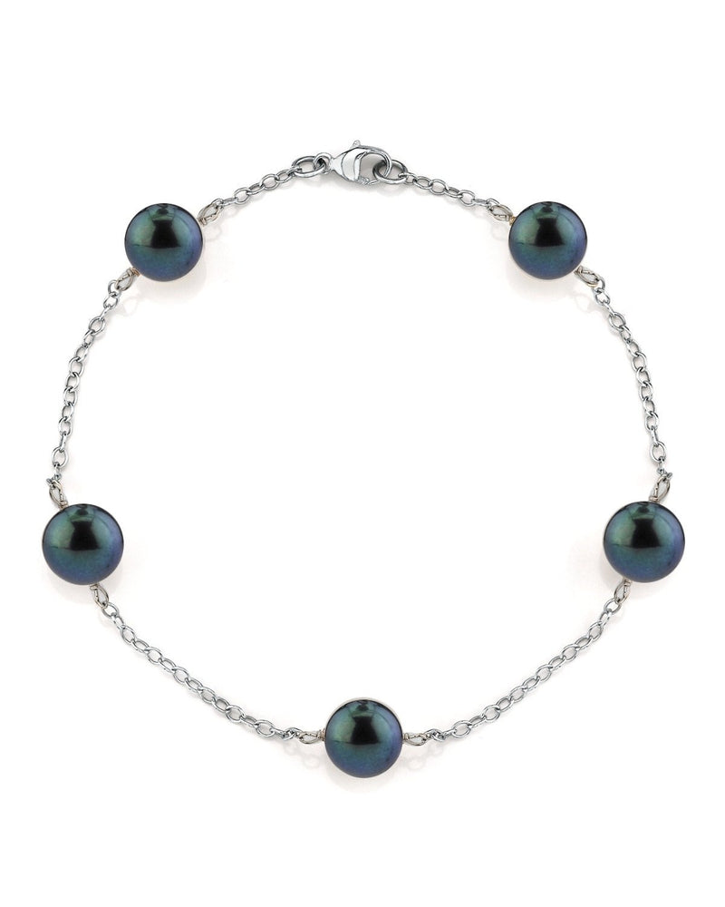 Intensely saturated, Midnight Blue to Greenish-Black Overtones are sure to capture the eye and the imagination.This beautiful Black Akoya Pearl Bracelet ranges between 7.0-7.5mm in size and consists of beautiful and lustrous pearls in AA+ Quality.