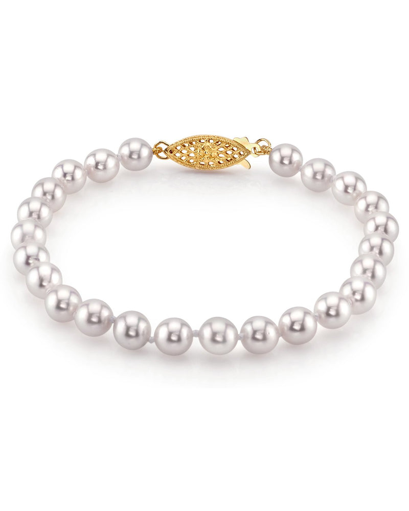 Our simple yet classic Japanese Akoya pearl bracelet is the perfect accessory for any outfit. Hand-selected for their mirror-like luster, mesmerizing overtones and bright, clean surfaces, our 6.0-6.5mm pearl bracelets measure a standard 7.5-inches, but we can customize to fit any wrist.