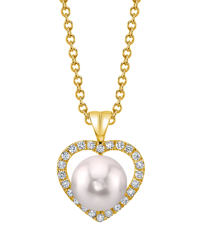 This pearl pendant features a gorgeous AA+ quality 8.0-8.5mm Japanese Akoya cultured pearl with 'Very High' luster (please see our Akoya pearl grading section for more information). All Akoya pearls are imported directly from Japan. The pendant is comprised of 0.74 grams of the finest quality 14K gold and also includes 0.24 carats of SI quality diamonds. All of our pearl pendants are made on site, and our experienced staff of GIA certified specialists pay careful attention to all details in order to create a truly beautiful pendant. The pendant comes in a beautiful jewelry gift box. Please view the options below to customize your pendant.