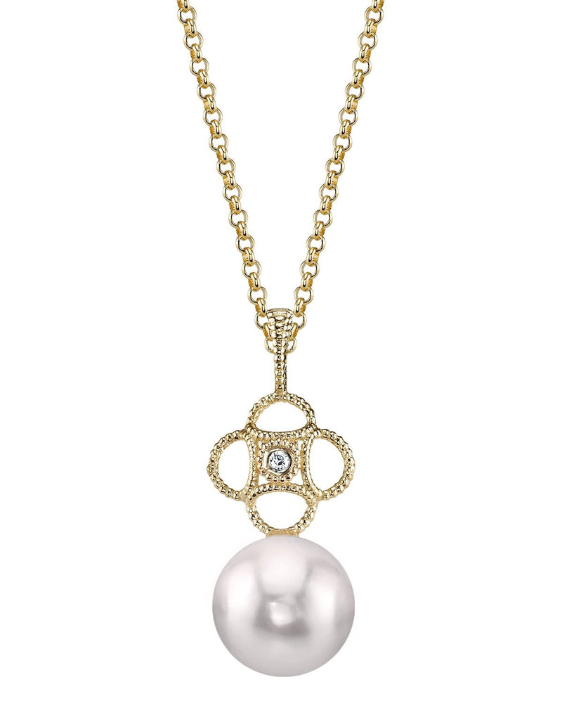 This exquisite pendant features a 7.0-7.5mm AA+ quality Japanese Akoya pearl mounted on the finest 14K gold with a dazzling SI clarity diamond. The pendant is packaged in a beautiful jewelry gift box, perfect for gifting.