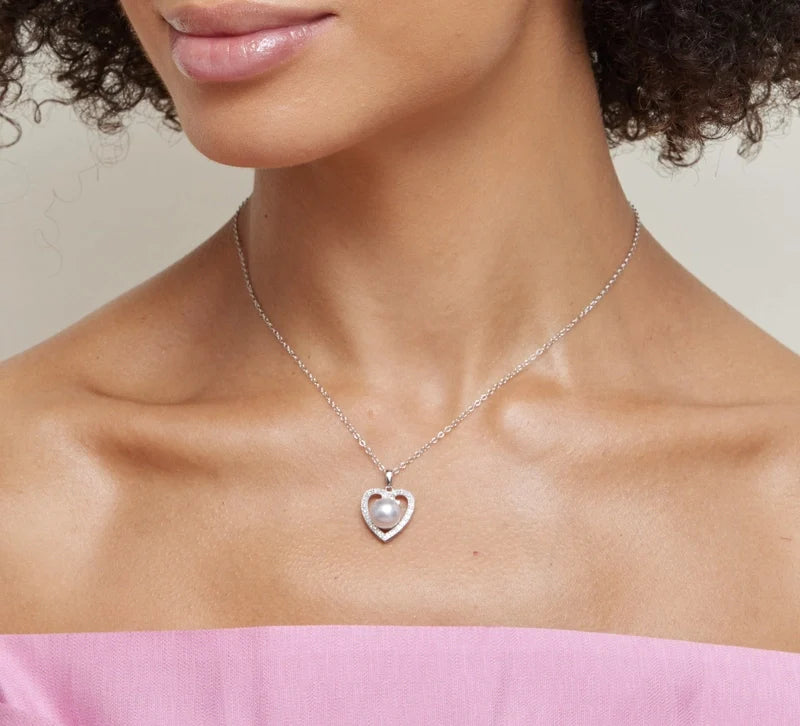 Akoya Pearl Heart-Shaped Diamond Pendant- Choose Your Pearl Color