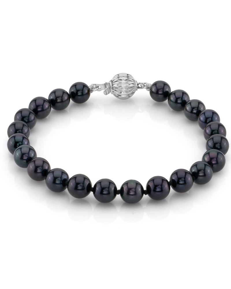 Hand-selected for their bright, glossy luster, alluring and uniformly matched Midnight Blue to Greenish-Black hues and perfectly round shapes, our color-treated Black 6.5-7.0mm Akoya Pearl Bracelets are a simple yet classic accessory for any outfit.