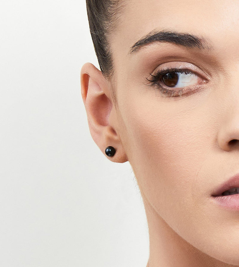 Perfectly round, Black Akoya pearl stud earrings are a demure yet striking addition to any jewelry box. Measuring 6.5-7.0mm, each well-matched set features bright, crisp luster and gorgeous Midnight Blue to Greenish-Black Overtones.