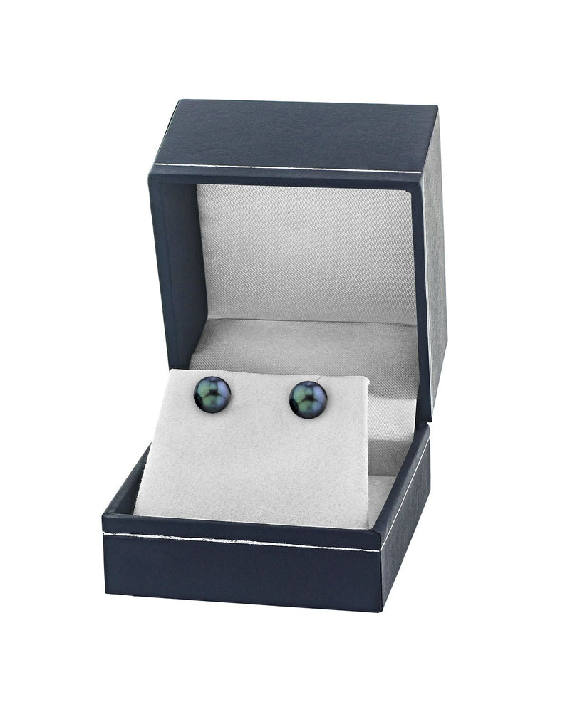 Tantalizing Midnight Blue to Overtones and glossy, sharp luster make these Black Akoya Pearl Stud Earrings a perfect gift for yourself or someone special. Perfectly round, color-treated Black Akoya pearls measure 7.5-8.0mm, and are hand-matched and mounted according to your preferences.