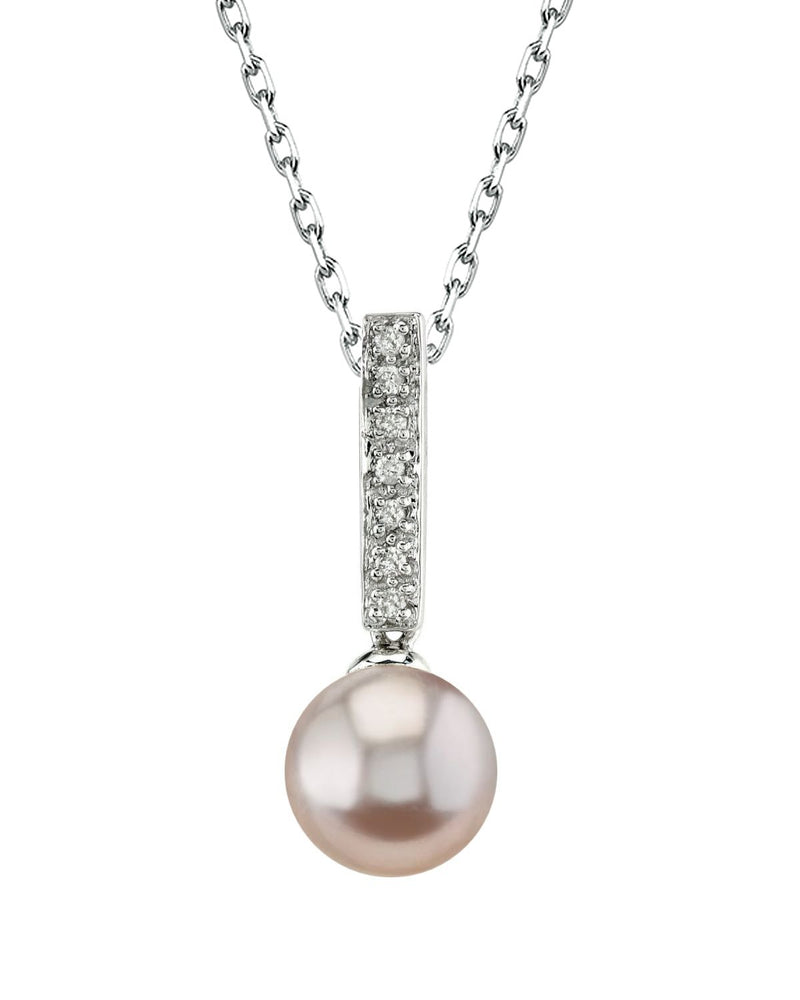 This exquisite 14K gold pearl pendant features a beautiful 8mm AAAA quality pink Freshwater cultured pearl with very high luster. The pendant also features 0.19 carats of SI clarity diamonds.