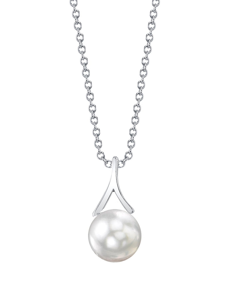This modern, chic Pearl Pendant features a gorgeous 8.0-9.0mm AAA Quality White South Sea pearl, hand-selected for its bright, touchable luster and attractive pastel Overtones. The pearl is mounted on the solid 14K Gold Wren Pendant, and comes with a matching chain. Your new South Sea Pearl Wren Pendant is packaged in a beautiful jewelry box, perfect for gifting.